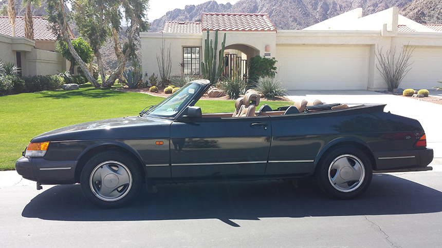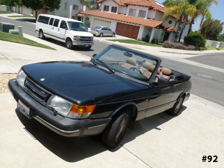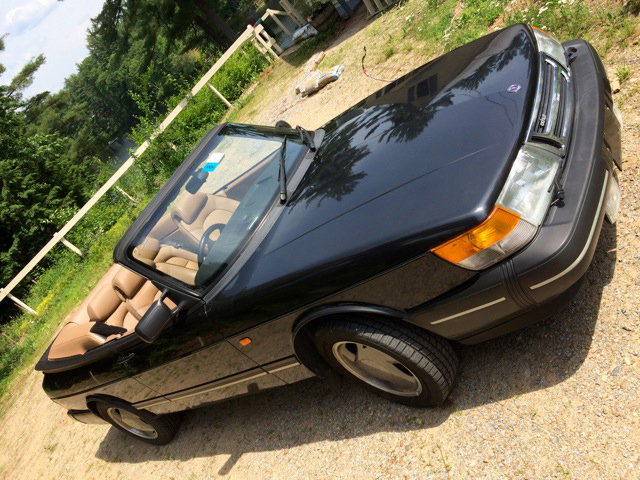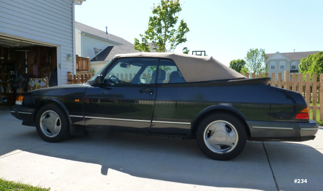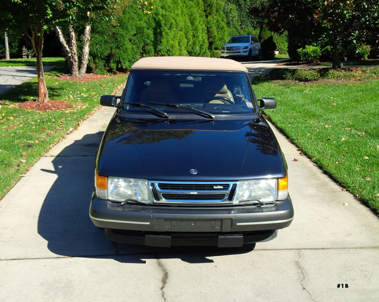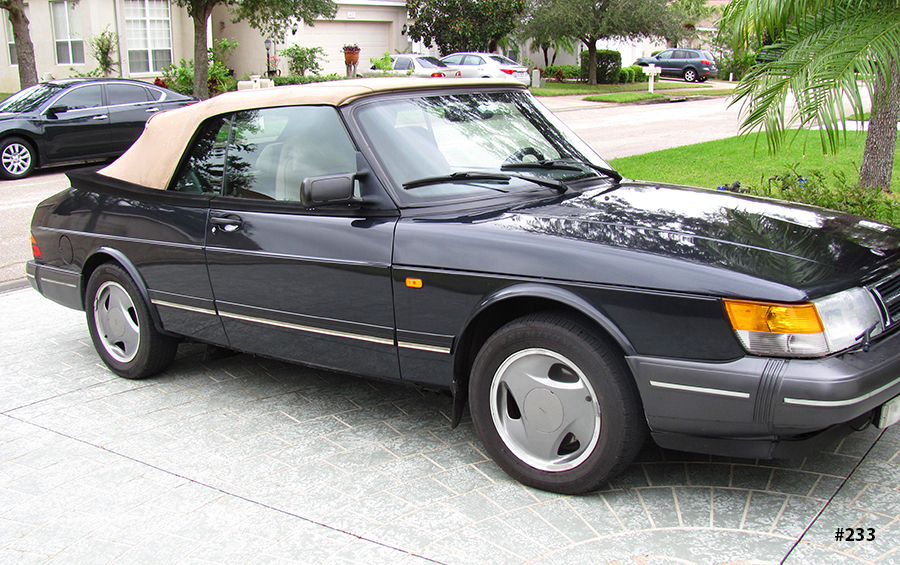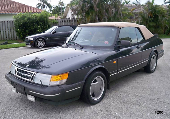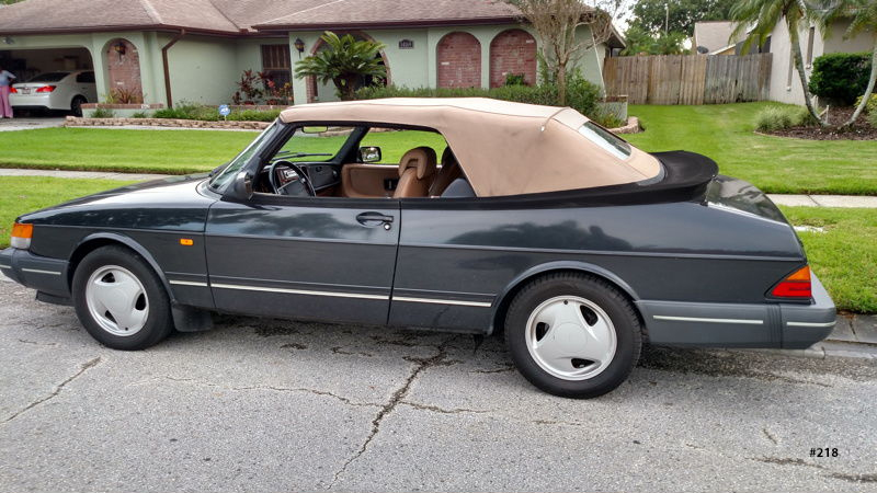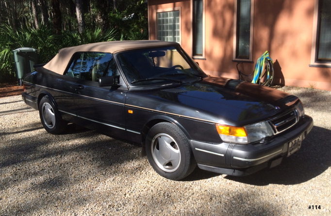PREVIOUS REGISTRANT (Drew Popson, Palm City, FL, 8/2014, 75,847 mi.) Very good condition. It's been my weekend beach cruiser for the last 2 years. Garage kept. Car drives and handles great—the whir of the Turbo is intoxicating, and urges you to accelerate so you can hear it as often as possible. I purchased the car just over 2 years ago, and have only put about 2k miles on it since. When I bought it I had the front brakes/rotors replaced, as well as the ignition (car now starts in neutral rather than having to start it in reverse gear). Stereo is an aftermarket Sony Xplod CD player with an Aux cable input to play your iPod or MP3 player—sounds great. Heated Driver's seat, power seats, power mirrors, power locks and power convertible top all work great. A/C, cruise control, washer spray, headlight wipers and rear defrost are not working but components are present. Does not have the original fog lights. The convertible top has some repairs to it, but does not leak. Dash is free of any cracks or damage. All glass is original and in great shape. Driver's side seat has some typical wear on the side bolster—other than that, the leather seats look amazing. Original alloy wheels have some pitting, dings and scratches typical of a 20 year old vehicle. The paint on the hood is faded slightly, as is the front emblem. Paint on the sides and trunk looks very good. There is rust on the driver's side door jam, in the usual place for these older saabs. The previous owner lived on the ocean, so there is surface rust on the trim pieces and on the chrome parts—like the seat belts. Overall, a great daily driver, weekend tourer or an easy project car to restore to its original condition. Incredible low, original miles! For sale 8/24/14. SOLD.