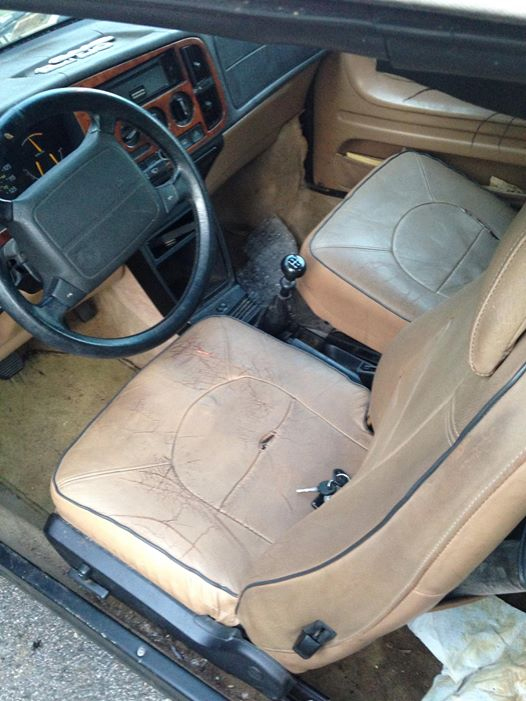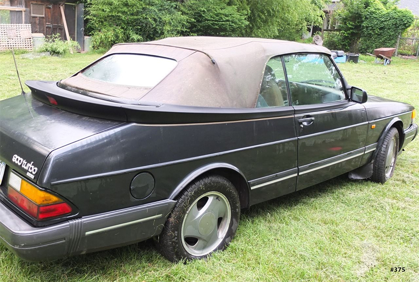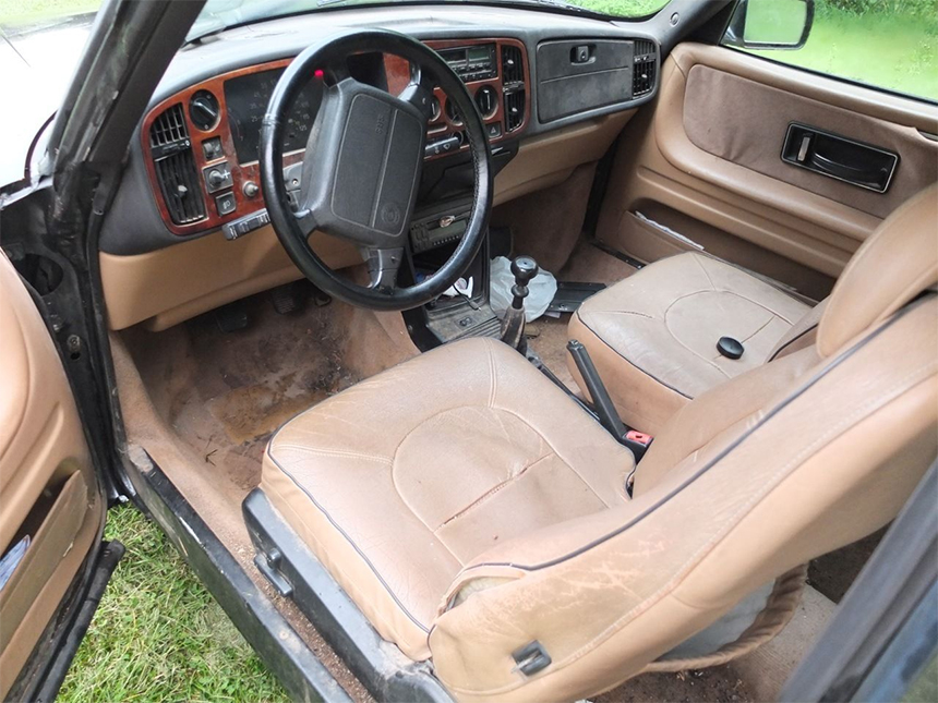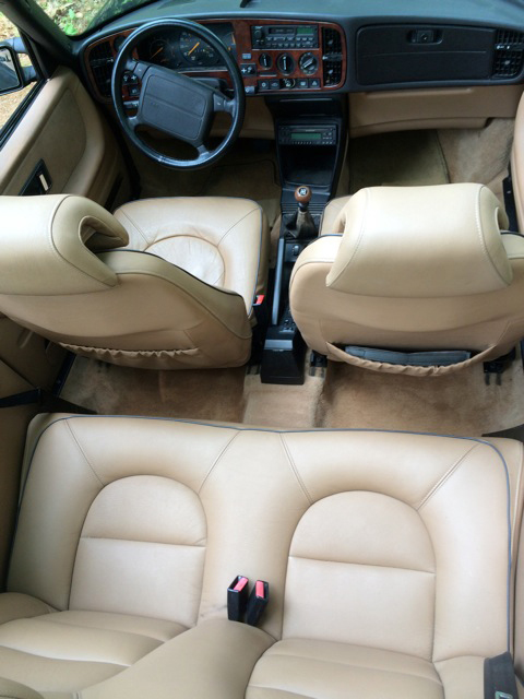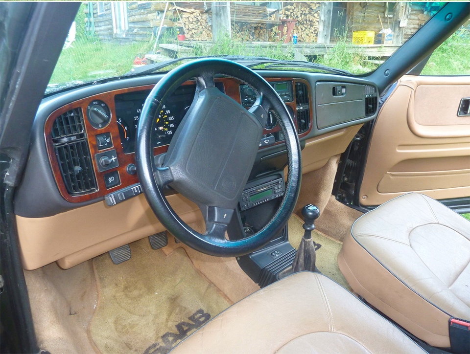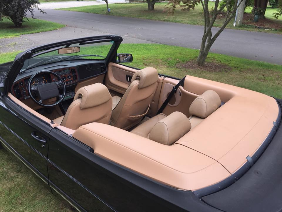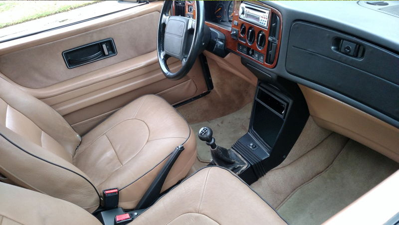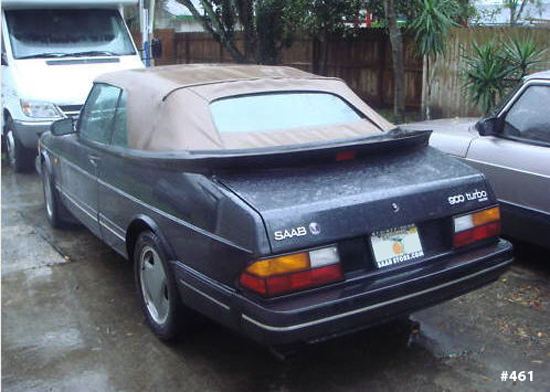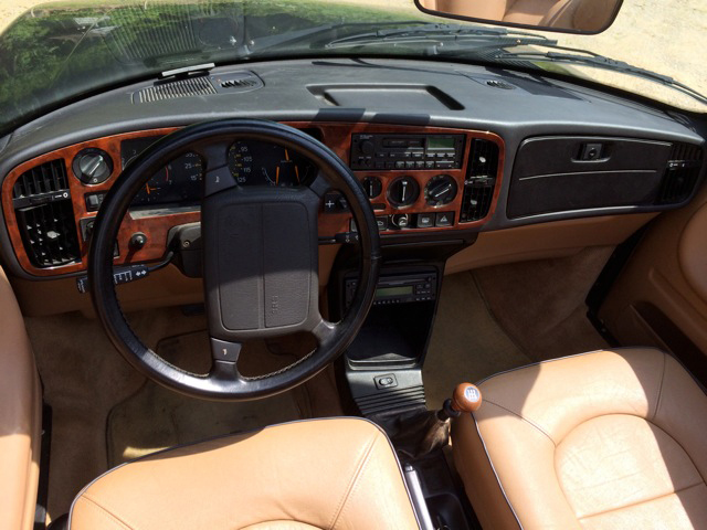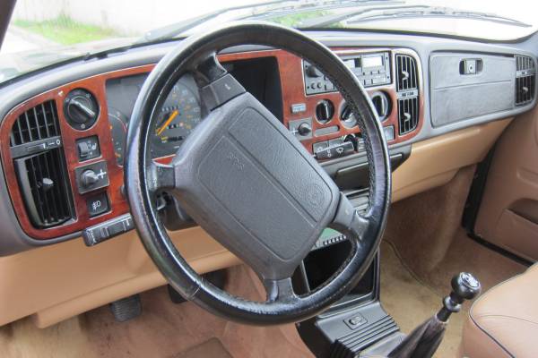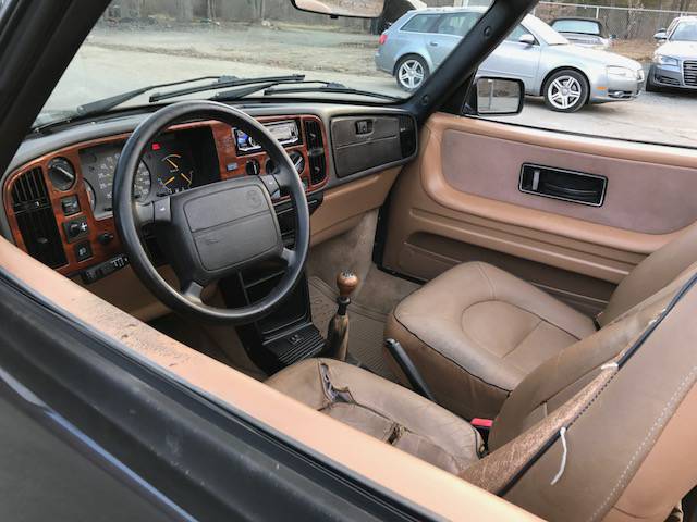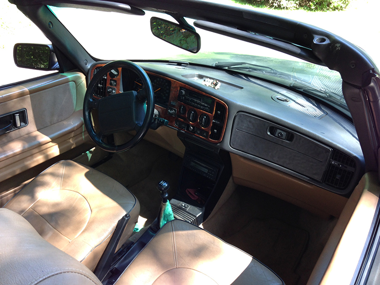 - COMMENTS: I just purchased the car with a blown head gasket from a woman who could not pay the $2500 estimated by the local Saab dealer for repair. She listed it on craigslist and I purchased it for $200. It runs and otherwise seems in good mechanical condition with a nice, strait, original rust free body, excellent glass, wheels, trim, dash, top boot and original interior. The body has a small ding on the left rear quarter and a minor dent repair on the passenger door. The seat seams are coming apart but the leather may be salvageable. The interior was sprayed at some point and I'm cleaning that off. All around, it is in pretty good condition. It came with a new exhaust system, a good tan top, two almost new Michelins, a head set and new head bolts. 148K showing on the odometer and good service records with the car. The radio and AC don't work but just about everything else does. The car looks completely stock. The service records show the car came from California to Hawaii about six years ago. I'm thinking of sewing a new leather interior from some high-quality skins that I've located but they are slightly darker than the stock tan.