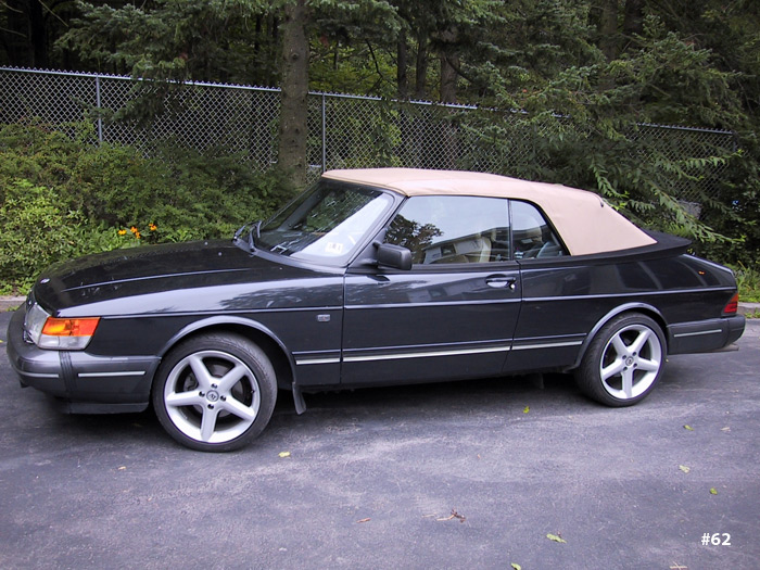 - COMMENTS: I purchased this car in 2003 in Syracuse, NY after totaling my previous CE. I just car this car back from the body shop after a hit-and-run accident. She has a new left quarterpanel. It has been re-painted and now is not stock with painted bumpers, trim panels and license plate panel. It has been painted with a PPG paint mixture to approximate the graphite metallic that is stock on the 1994 CE convertible, but with a silver instead of gold strip. As for differences in mechanics, here's the list 16' super aero wheels from a '95 9000 Aero shod with Bridgestone RE750's (I may buy Nokians this winter). I always thought the stock wheels were ugly K&N cold-air filter Bosch 30lb. injectors Swedish Dynamics freewheel* Swedish Dynamics Red-series turbo* Swedish Dynamics BOV* Installed during my 5-speed rebuild in 2005 Replaced the tan top with black in 2005 Bilstien HD springs with SD urethane bushing kit in 2008 Blaupunkt 6-disc indash head unit with a 300 watt Rockford Fosgate amp.